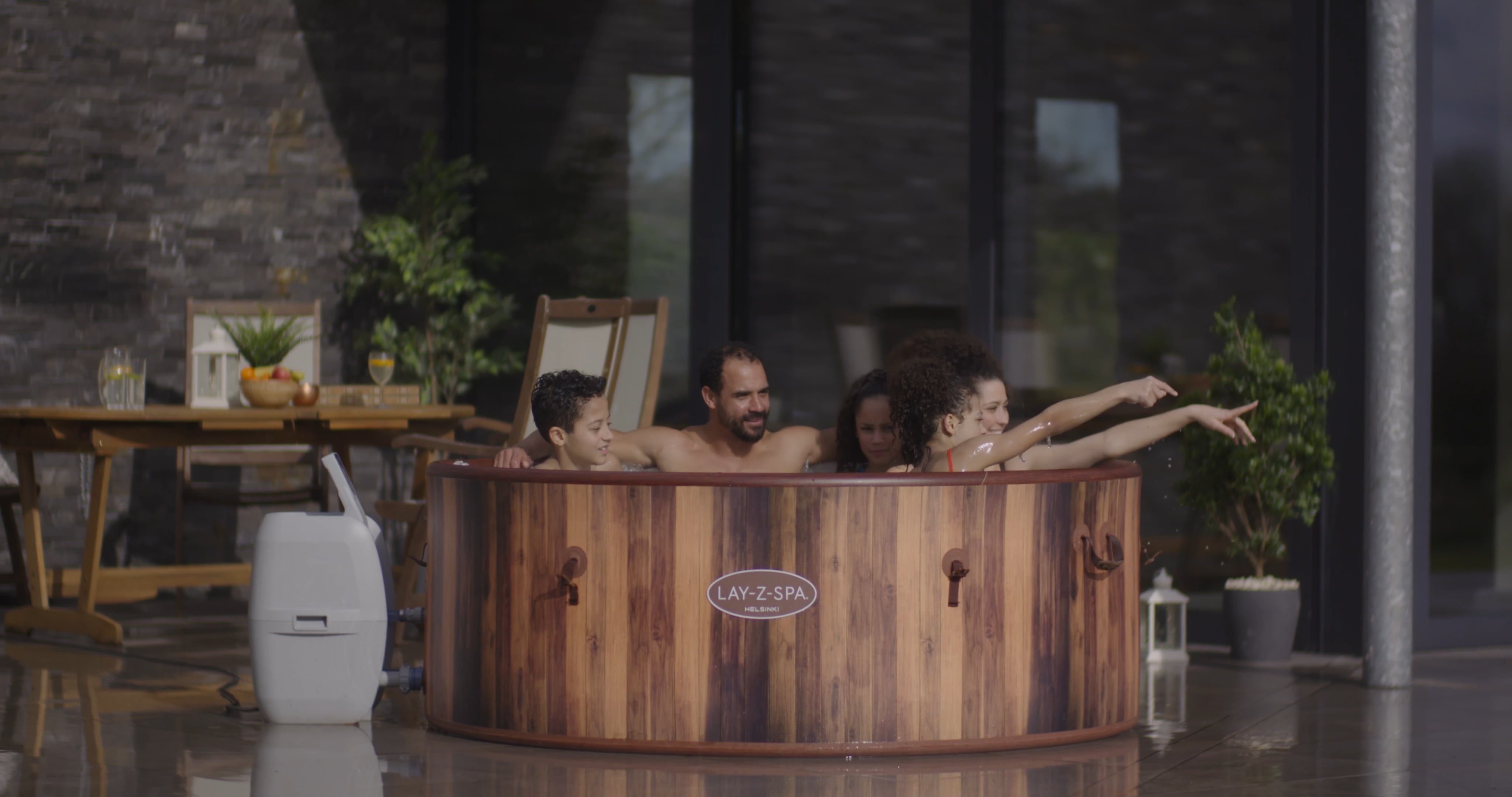 Relax and unwind at home and enjoy positive benefits to your health and wellbeing with the spacious Lay-Z-Spa Helsinki Smart AirJet Plus™, a 7-person inflatable hot tub inspired by the look of traditional Nordic wooden hot tubs.
