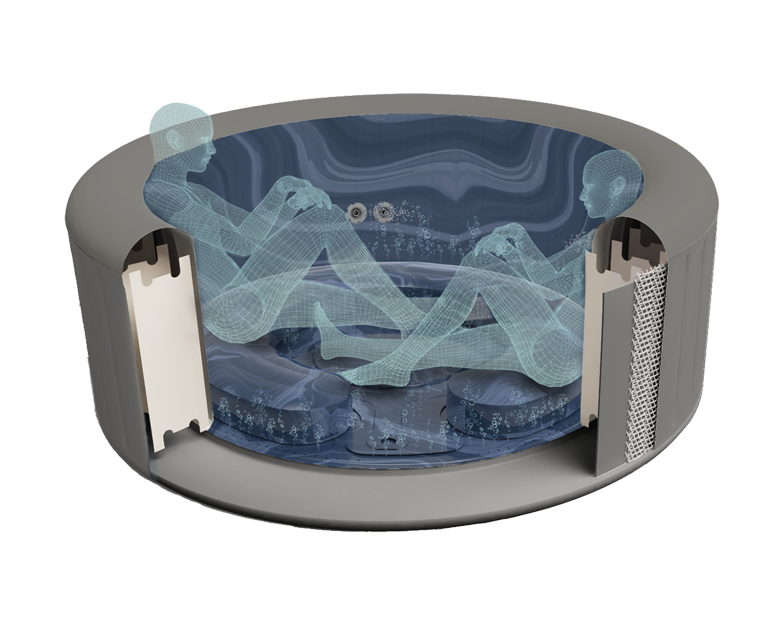 Experience premium luxury relaxation, positive benefits to health and wellbeing, and unwind comfortably with the Lay-Z-Spa Santorini EnergySense® Smart Luxe HydroJet Pro™, an indulgent, energy-efficient inflatable hot tub with seats for up to 7 people.