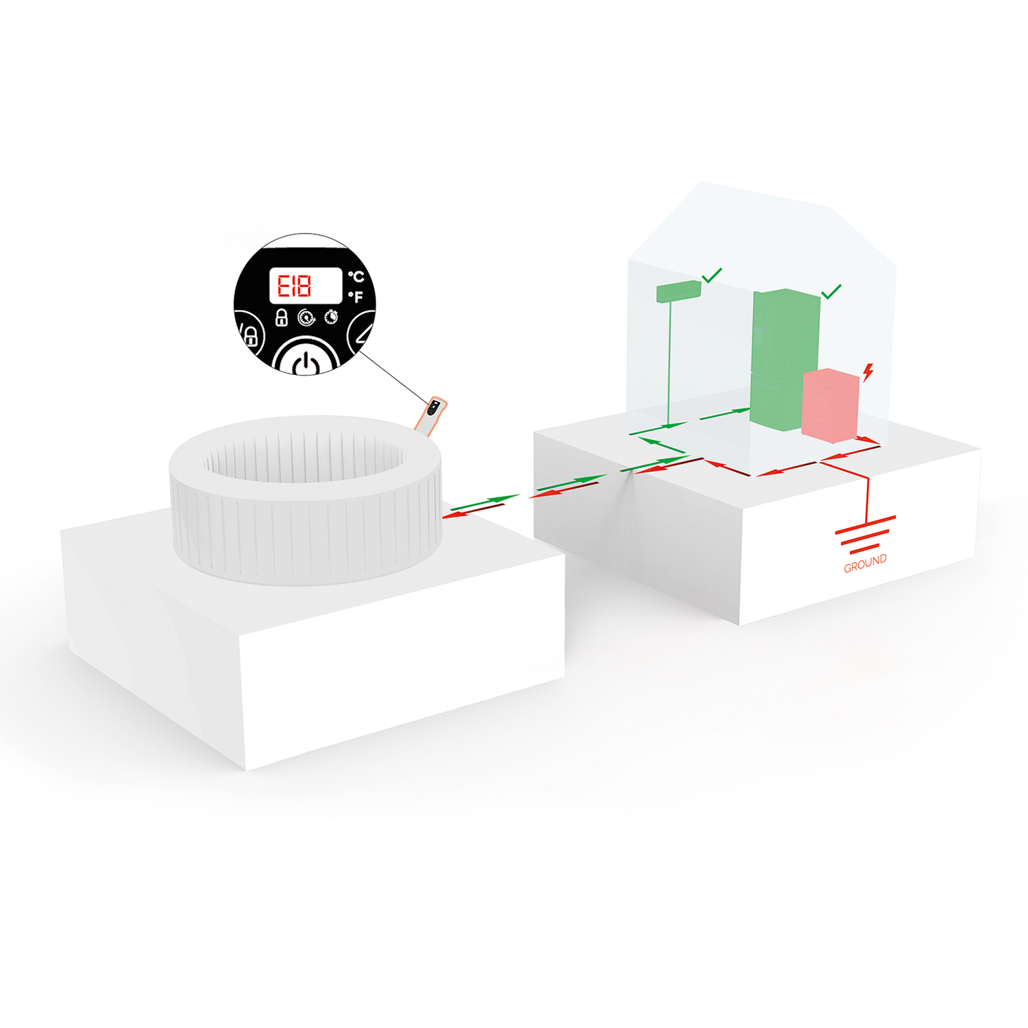 This system can detect if there is current discharged into the grounding line coming from other electrical appliances installed in the household.