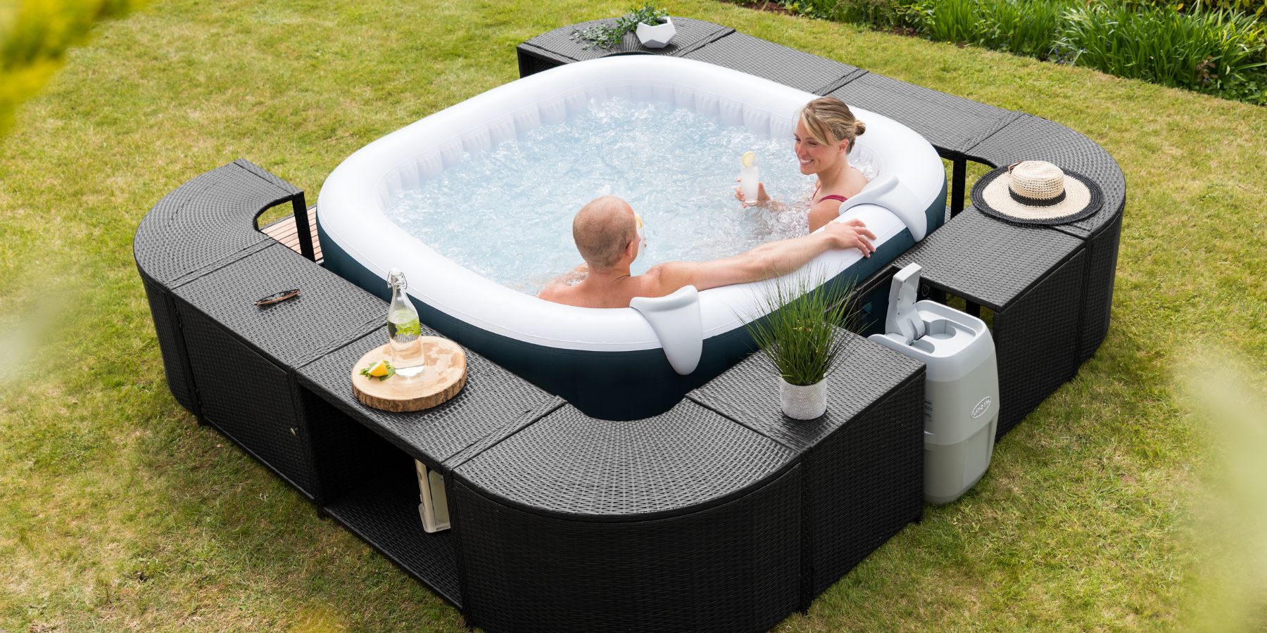 - Enhance your hot tub experience with the Lay-Z-Spa® Rattan Surround, a stylish and functional addition to any spa setup.