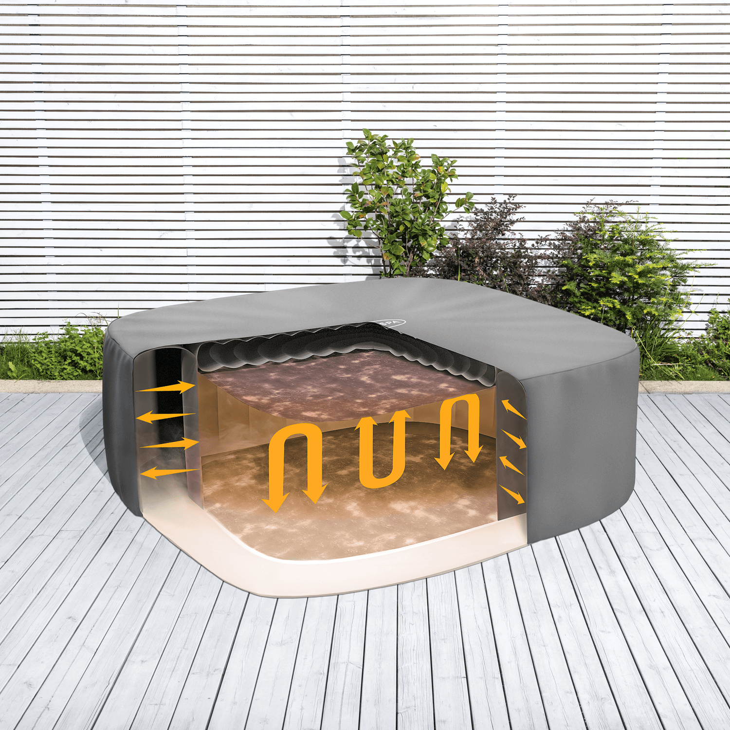 The Lay‑Z‑Spa thermal cover allows your hot tub's water to heat up quicker, therefore using less energy for a shorter period of time, and improves the overall heat retention by keeping the heat in the water for much longer. Even once the heater has been turned off, you'll notice significantly less heat loss.